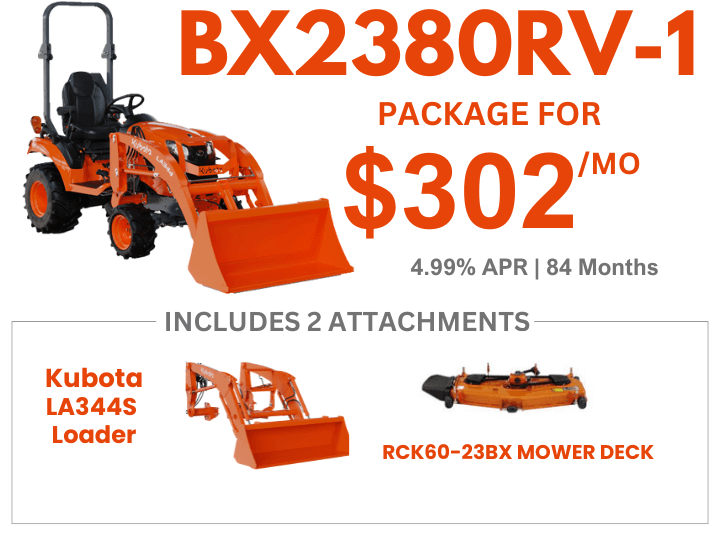 0% APR available or save with cash discount on your new Kubota BV Series!