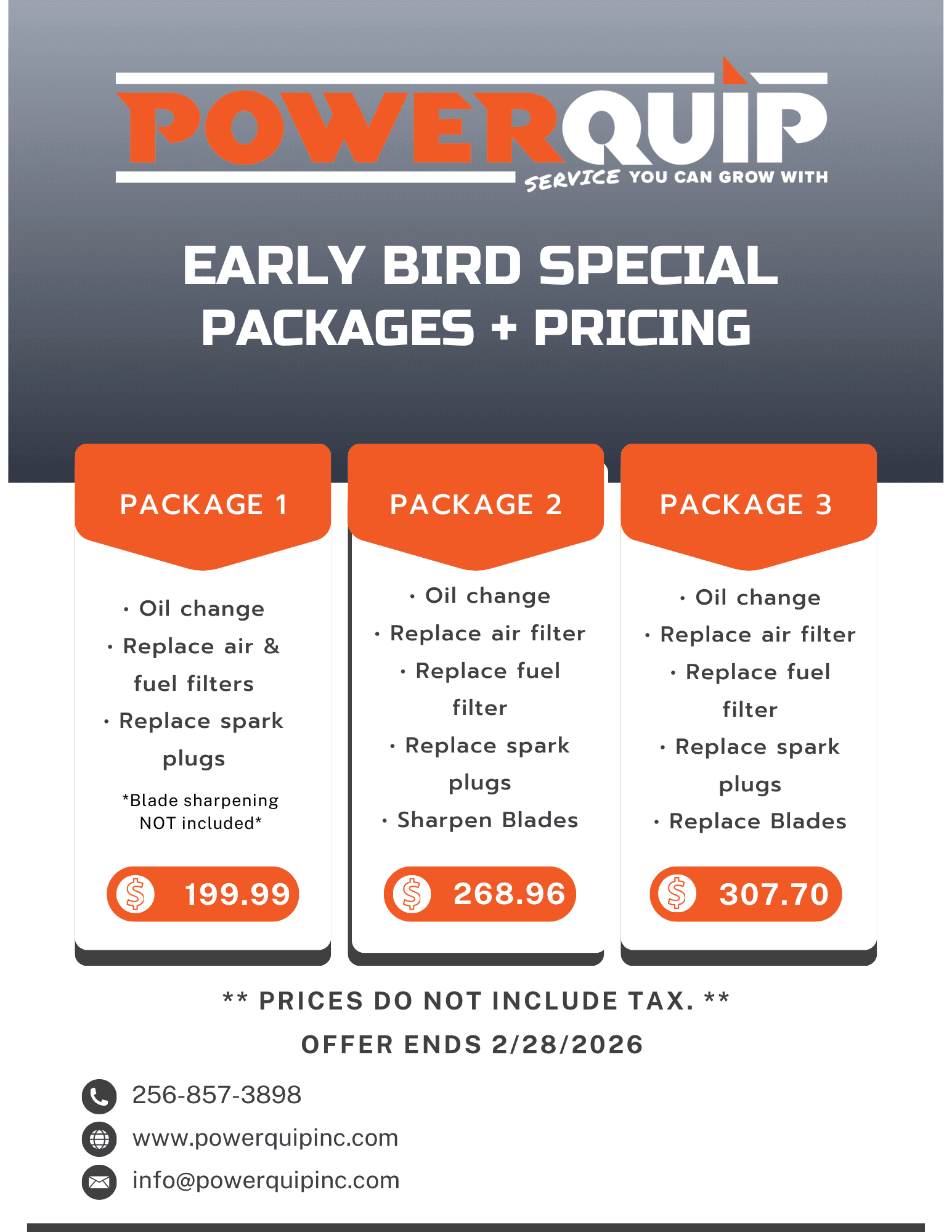 Early Bird Special Packaging + Pricing